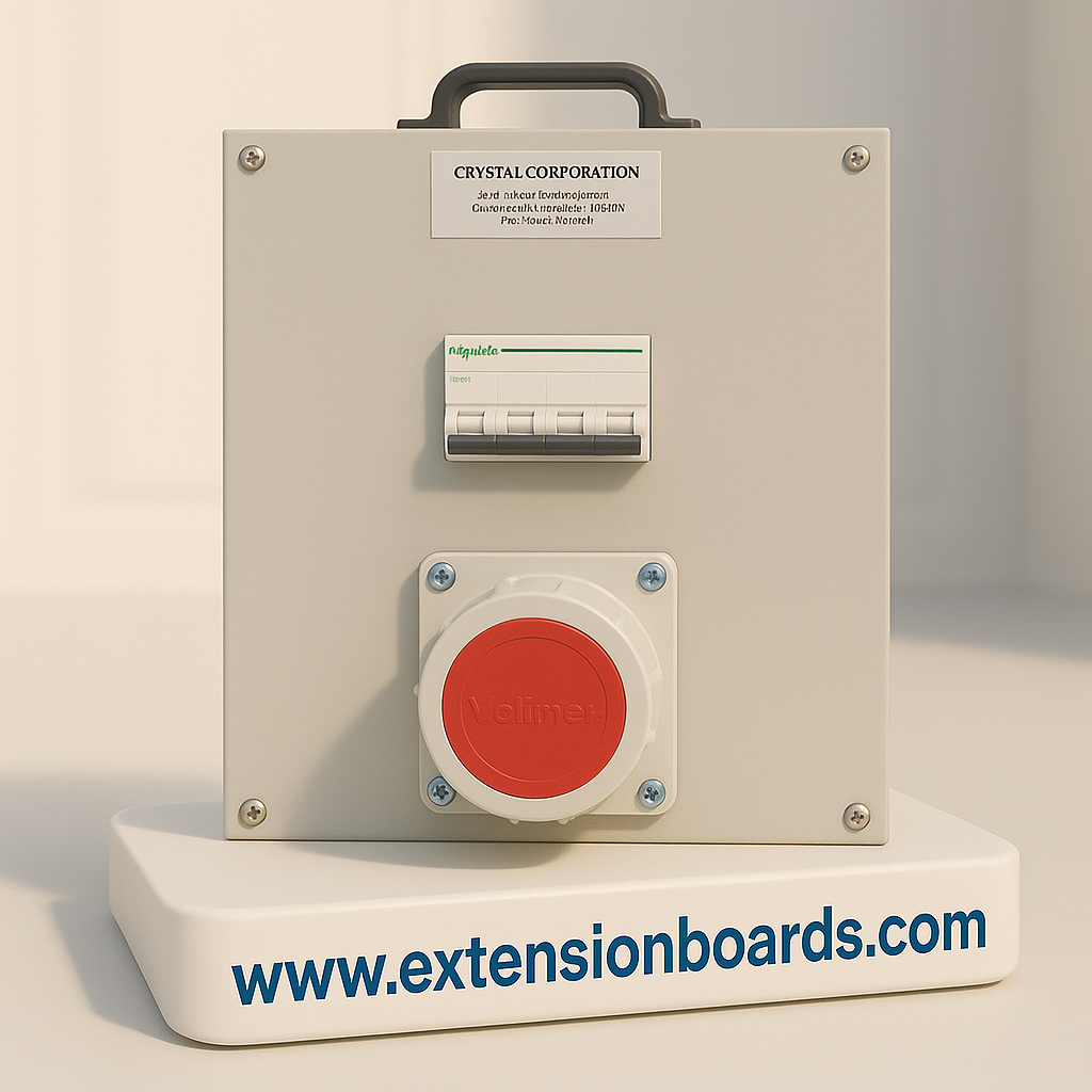 This premium-grade industrial power outlet unit features a 63 Amp, 5-pin IP67 socket with built-in RCCB protection, designed to power welding equipment, industrial machinery, or mobile extension boards. The enclosure is impact-resistant and weatherproof, built for long life under demanding operating conditions.